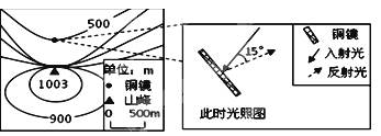 5、单选题 某日,位于铜镜处(33°N)的人们正好看到太阳位于图4中的山顶处。此时,阳光恰好被铜镜反射到陡崖处藏宝洞的洞口。读图完成下列各题。