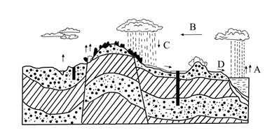 小题1:根据水循环的主要环节判断,A表示海洋水汽蒸发;B表示水汽输送;C表示降水;D表示地表径流。