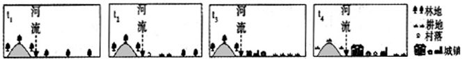 5、单选题 读我国某地区tl至t4时期土地利用变化剖面示意图(图中河流断面位于中游)。