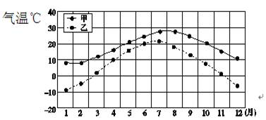 2、单选题 某种农作物生长期约2个月,前期(1个月)最适宜温度15~18℃,后期(1个月)最适宜温度12~14℃。下图是种植该作物的甲、乙两地气候资料。根据所给材料,回答下列各题。