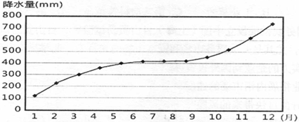 3、单选题 下图是北半球亚热带某地降水量逐月累计曲线图。读图完成下列各题。