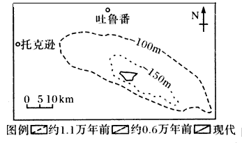 4、单选题 艾丁湖的存在对吐鲁番盆地绿洲的维持具有重要作用。下图是1万多年来艾丁湖变迁示意图。读图回答 1~2题。