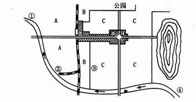 1、综合题 (12分)下图为“某城市简图”,当地夏半年盛行东南风,冬半年盛行东北风,读图完成下列问题。