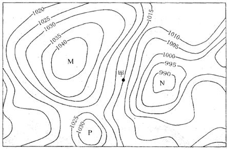 (2)若该地气压只受温度影响,则M、N、P中地面温度最高的是____________。(2分)