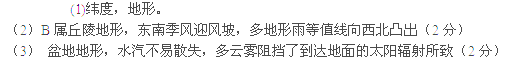 (3)右图为太阳辐射的分布曲线图,等值线在C处数值最小的原因。