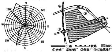1、单选题 下图为某城市一年中各风向出现的频率及该市工业区划图,据图回答: