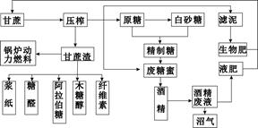 5、单选题 贵州省贵糖集团推行的循环经济模式使产生的废弃物利用率达95%以上,占总产值的67%,超过蔗糖主业。图为该集团的生产工艺流程图。读图完成题。