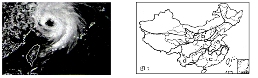 3、单选题 中国防灾减灾的任务既十分重要,也十分艰巨。图1为“某气象卫星云图”。 图2 为“我国自然灾害区划图”,读图完成问题。