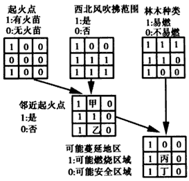 1、单选题 ? 如图为网格式地理资料,显示森林火灾蔓延的相关信息。其中邻近起火点是指位于起火点方格旁(相邻或对应的方格)且位于风向吹拂的方格范围。可能蔓延地区是指位于邻近起火点的方格且位于易燃林木的方格内。读图回答下题。