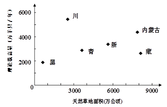 2、单选题 读“我国6省区天然草地面积与理论载畜量散点图”,回答下列问题。