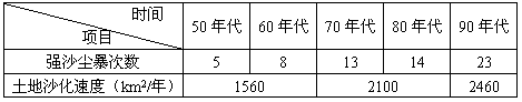 1、单选题 下表是中国20世纪下半叶强沙尘暴发生频率与土地沙化速度统计表。读表回答1—3题。