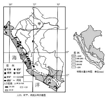 4、综合题 某国是一个世界矿产出口大国,2011年中国成为该国第一大出口国,两国贸易日益频繁。下图为该国部分地理要素分布示意图。