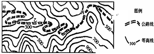 3、单选题 读下图我国某山区公路规划设计图,回答下列问题。1.图^91考试网路沿线甲、乙、丙、丁四地中,海拔最高点出现在2.若甲、丁两点之间的直线距离为40千米,要在边长为2米的图幅中完整绘制该区域图,所选用的比例尺应为