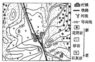 4、单选题 下图为“某区域等高线地形图”,A、B为城镇。读图回答下列问题。(10分)