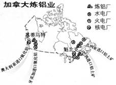 5、单选题 读“加拿大炼铝业分布示意图”,完成问题。