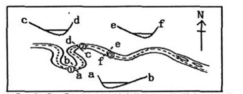 3、单选题 下图是北半球某段河流河道形态和断面图,虚线表示河流主航道中心线。读图完成下列各题。