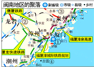 小题2:城市等级越高,提高的服务功能越全,低级城市只提供服务等级较低的商品。故购买鱼虾等日常副食品可在当地;购买彩电、冰箱等生活用品可到东山(县级城市);看疑难重病需要到较高级城市(厦门为副省级城市),正确。