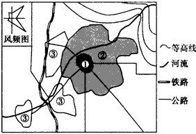 (2)商业区、住宅区和工业区在①、②、③地应如何布局?