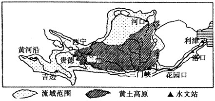 材料二:黄河流域及主要水文站分布示意图(下图)