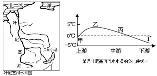 小题2:叶尼塞河的结冰期是11月到次年4月,A错误。叶尼塞河夏季水量主要来源于雨水,B正确。图示季节河流的一部分结冰,可能是秋末冬初,也可能是冬末春初,所以穿过叶尼塞河流域的0℃等温线可能北移,也可能南移,C错误。地壳运动不会影响水温,D错误。