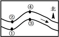 小题1:读图可知,②处位于河流的凸岸,根据河流在凸岸堆积,在凹岸侵蚀的原理,所以在上图所示河流的②处,流水作用主要表现为堆积。