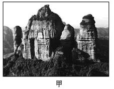 1、单选题 2010年8月,“中国丹霞”被正式列入《世界遗产名录》。甲图为广东丹霞山地貌景观,图示山体主要是由红色砂砾岩构成。乙图为地质循环示意图。读图回答题。