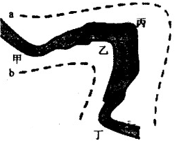 5、单选题 下图中虚线为等压线,且a的数值大于b。下列四处河岸中,受侵蚀较重,且此时最有可能出现阴雨天气的是