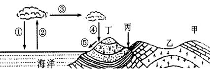 (1)图中表示岩浆岩的是 (甲/乙/丙);B代表的是 (名称)过程。