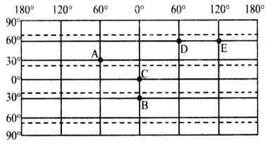 1、综合题 下图为世界经纬网示意图,读图同答下列问题。