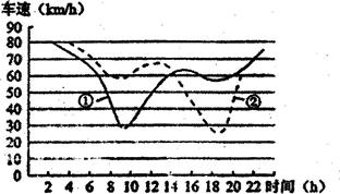 B.①曲线反映8―10时汽车流量较小,道路畅通