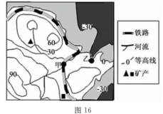(2)甲是传统工业城市,其主要工业部门最有可能是?,该市发展此工业的主要优势区位是?、?、?。(4分)