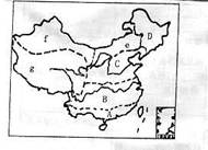 (1)图中A、B、C、D分别代表的四个自然地区内主要的平原是: