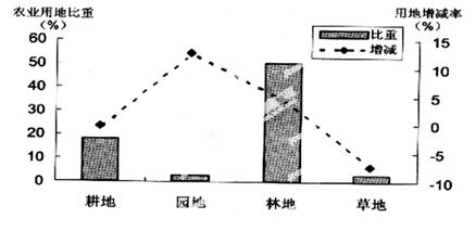 (2)2010年G省区农业用地中______增长量最大;耕地比重不大的主要影响因素是______;该地区主要的生态环境问题是______和土地石漠化。(6分)