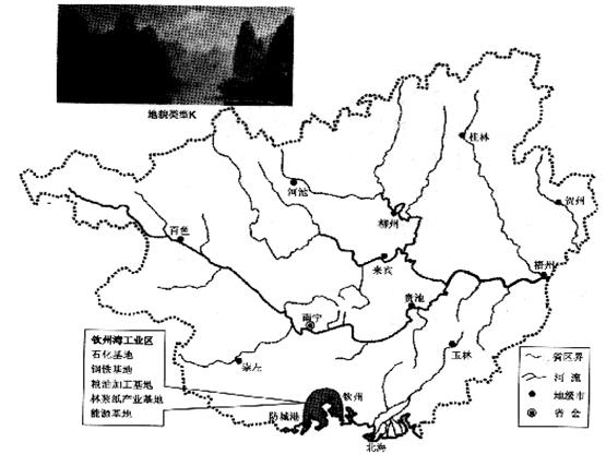 (5)钦州湾工业区计划引入汽车制造业,请分析其有利的区位条件。(6分)