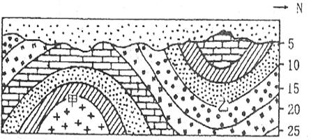 4、综合题 读某地的地质剖面图,试着当一位地质工程师,对下面的问题作简要的分析说明。(10分)
