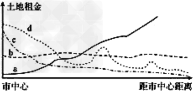 1.图中能正确表示城市从市中心到外缘地租水平变化趋势的曲线是