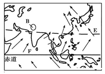 3、综合题 读“亚洲季风图”,回答下列问题。(12分)