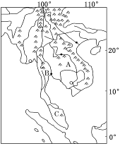 (2)根据位置判断为:湄公河;“浮稻”反映水位涨落变化大,即河流流量的季节变化大。原因:该地受热带季风气候影响,降水的季节变化大。