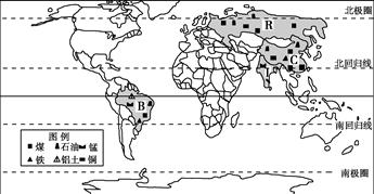 3、综合题 该图中的B、R、I、C四个国家被人称为“金砖四国(BRIC)”。