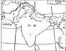 图中字母A处表示的是印度1980年开工挖的拉贾斯坦运河,它可以引印度河的最大支流——萨特累季河(在西藏境内叫朗钦藏布)的河水到塔尔沙漠。据国外农业专家估计,1987年这条运河正式输水后,印度西部干旱地区可增加57万公顷水浇地,使印度粮食产量大幅度增加,棉花产量约可增加12%。