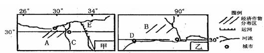 小题1:以图中A、B两地区生产的经济作物为原料的工业分别是?( )