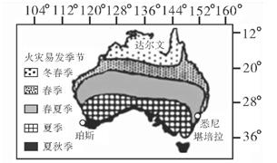 2、综合题 (12分)读“澳大利亚不同地区最容易发生火灾季节,回答下列问题。