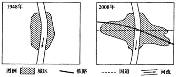1、2008年与1948年该城市地域形态明显不同,其最主要的影响因素是