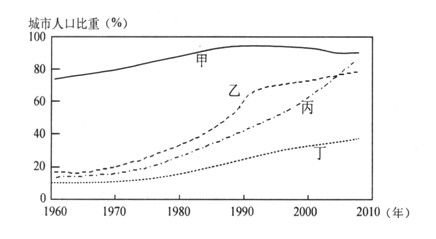 5、单选题 图为“四国城市人口比重变化示意图”。读图完成1—2题。