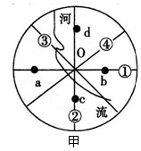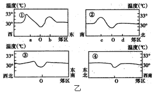 1、单选题 图甲是我国江南某城市及近郊地区范围图。图乙是①②③④四条线附近地区的夏季午后多年平均气温分布图。读图,回答1—2题。