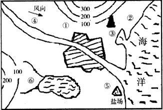 3、综合题 计划在下图①~⑥三处,分别建立化肥厂、罐头厂、自来水厂,各厂应建在何处最合理,并说明理由。