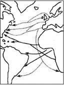 5、综合题 读图“世界部分地区人口迁移示意图(19世纪以前)”,完成下列问题。