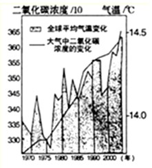 1、图中显示全球平均气温的变化与二氧化碳的变化呈现出