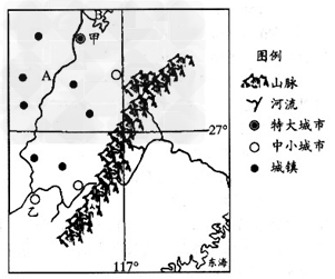2、综合题 下图为我国某区域简图,读图回答问题。