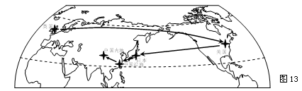 5、填空题 图13为某种产业世界范围内转移示意图,读图回答问题。